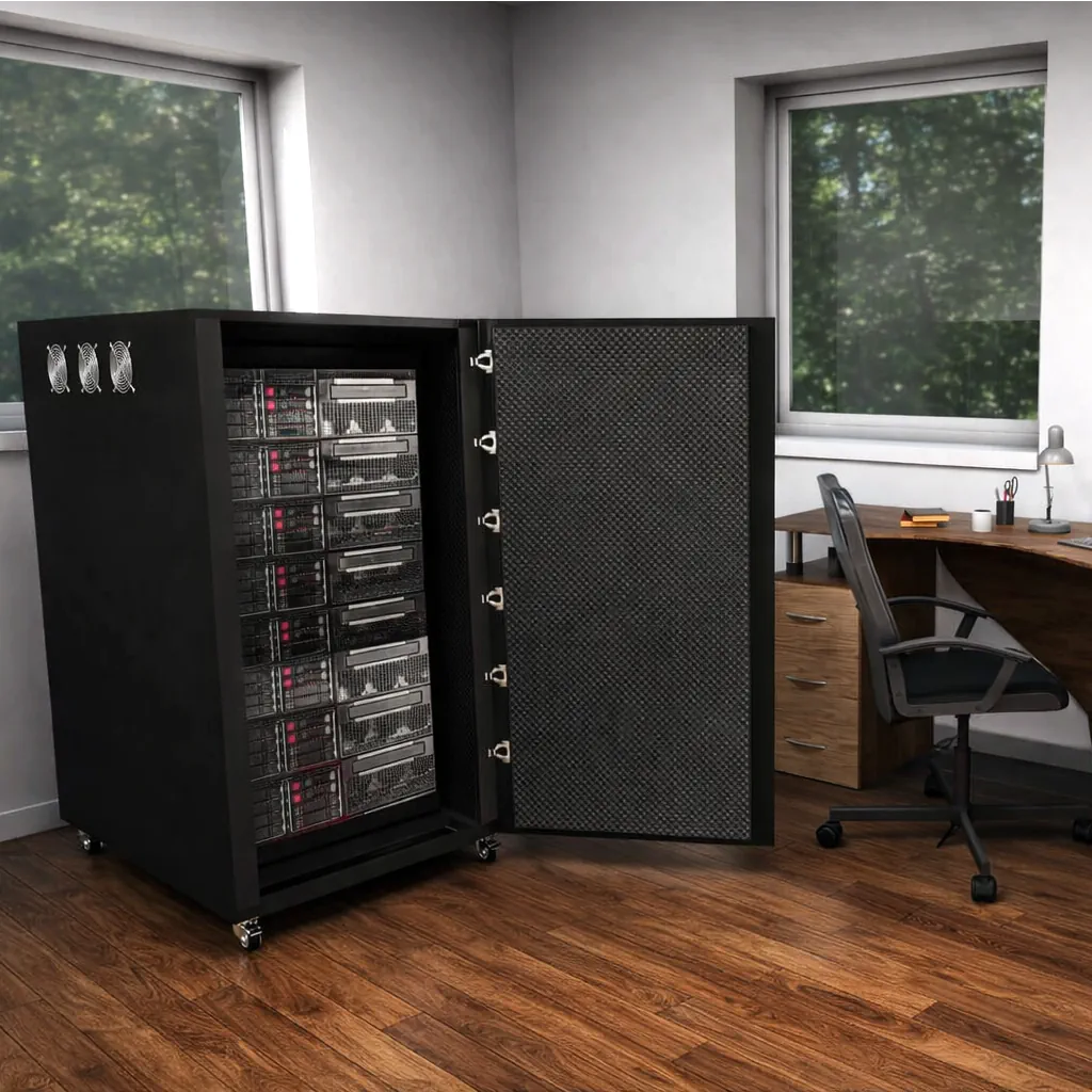 Every work environment has unique noise challenges. That’s why our standard and custom-made cabinet is designed to meet these challenges. It is engineered to fit a wide range of network equipment, allowing you to fill the soundproof rack with 19” server bays, small or medium rack servers, large data center racks from 1U to 47U and other noisy equipment in your workspace.